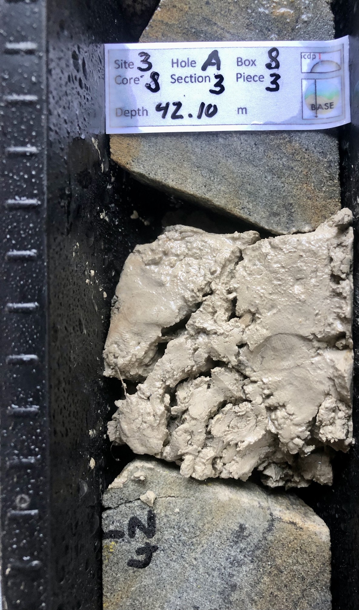 The drillers had their best day so far yesterday and brought us 8 trays (of 5 one-m cores each). We all put in a Saturday morning shift to start processing this heap.