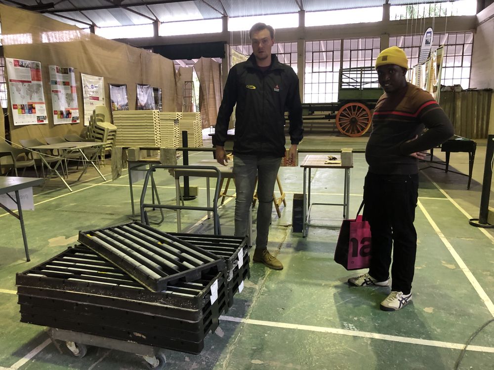 This is how our day begins: Ryan and Derek push the trolley of new core to the registration desk.
