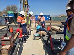 Visit to ICDP BVDP site by Bob Trumbull Freddie Roelefse, Justine Magson, Mabatho Mapiloko, Stuart Hill and Susan Webb discussing various aspects of the core.