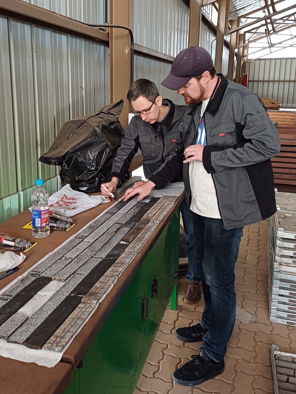 “Dr Wilhelm Nikonow and Dominic Göricke of the BGR sampling donated cores from BVDP borehole 5067_2_A (BH7772) at the University of the Free State in Bloemfontein (12-14 August 2024). They intend to characterise a continuous section through the Main Magnetite Layer using micro-XRF and LIBS.
