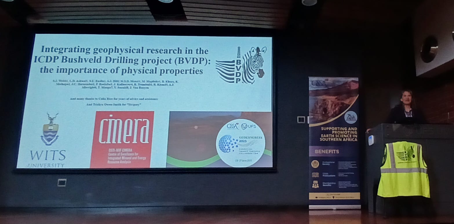 We are proud of Prof. Susan Webb for her excellent talk at Geo-Congress 2025, where she explained the goals and drilling process of the ICDP Bushveld Drilling Project (BVDP, 5067). Her presentation clearly highlighted how geophysical data can be collected from drilling, and she showcased our fantastic research collaborations. We were also glad to connect with Kenan from innovXafrica, who scanned our core and brought new possibilities for analysis. It was an exciting and successful day for the entire team!