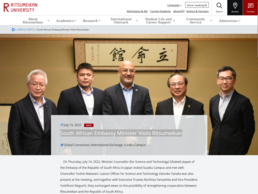 Ritsumeikan University News: The South African Embassy Minister visits Ritsumeikan University, exchanging views on the possibility of strengthening cooperation between Ritsumeikan and the Republic of South Africa.