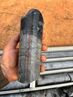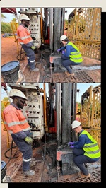 The drilling crew achieved three 100% one-core-piece runs in just 20 hours! Following the successful core recoveries from a few days ago, the night shift demonstrated its skills by drilling two intact 3-meter cores in one night. The day shift responded with their accomplishment, recovering another intact core by the end of their shift. We are impressed by these achievements. However, we regret to inform you that our core boxes can only accommodate segments of 1 meter.