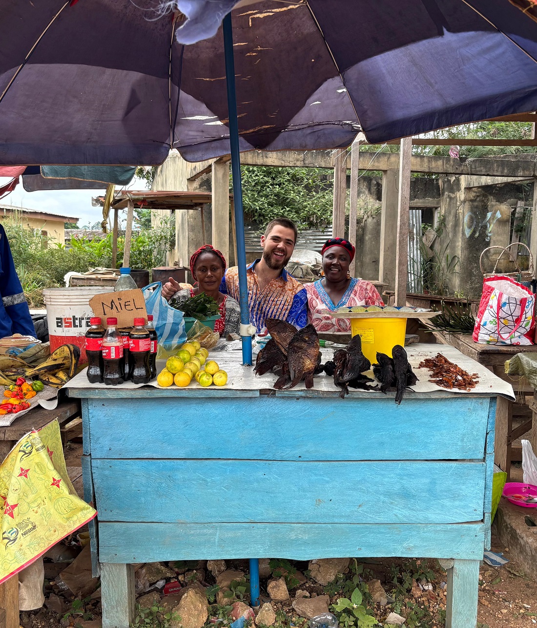 While our drillers established the new drill site, the team relocated to the nearby town of Okondja. At the local market, Ian not only found fresh goods, but he also introduced the GOE-DEEP drilling project to the residents.