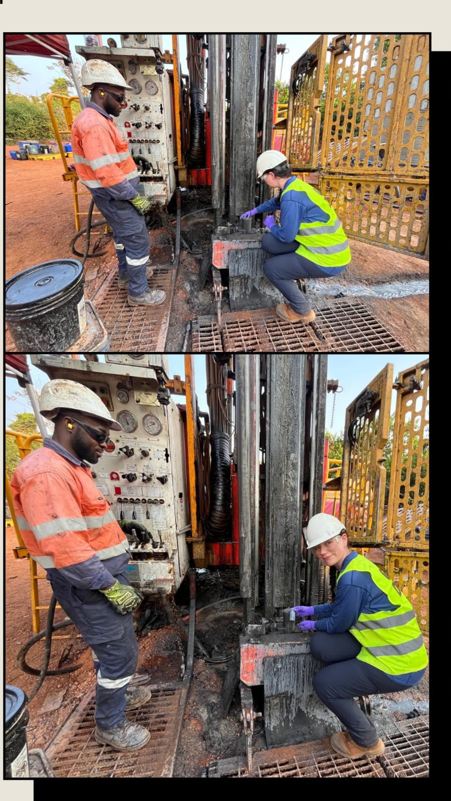 Fluid sampling requires teamwork. A slow and steady upward pull on the tube keeps the outgoing drill mud at a high level, making it ideal for filling sample bottles for hydrochemistry. Including today’s sampling, our team has collected a total of 64 fluid samples. These include the source water, the drill fluid injected into the hole, and the drill mud that is removed from the hole.