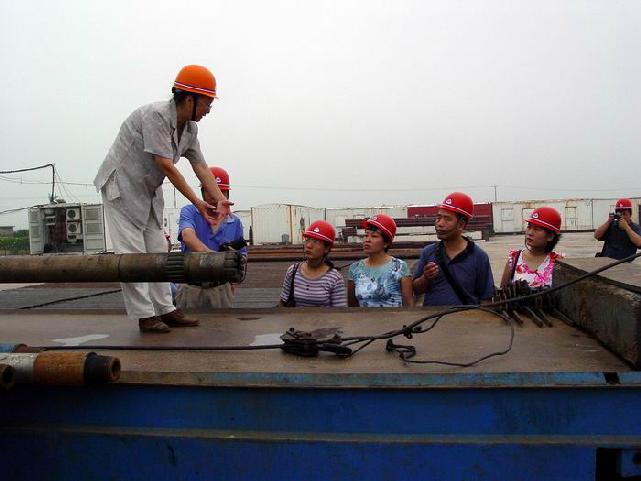 Some officials from Ministry of Land and Resources arrived at CCSD drill site. Mrs. Cai ci made a brief introduction to them.