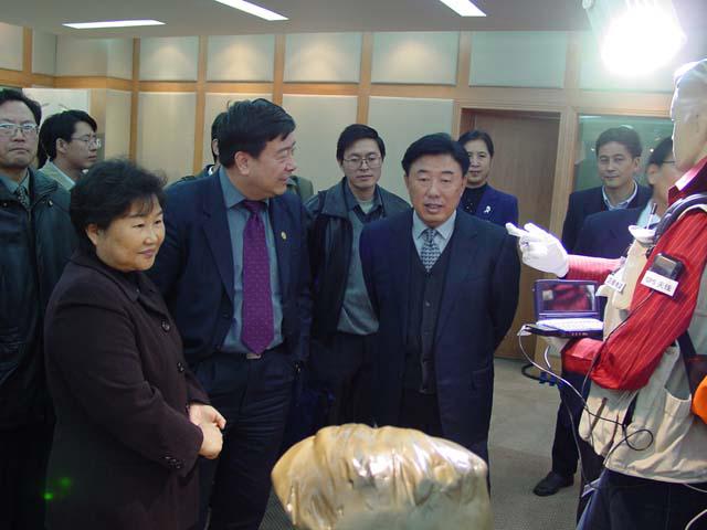 Mr. Tian Fengshan and Madam Shou Jiahua, Minister and vice Minister of Ministry of Land and Mineral Resouces(MLMR),visited the science and technology exhibition of Ninth Five-year Plan of MLMR.