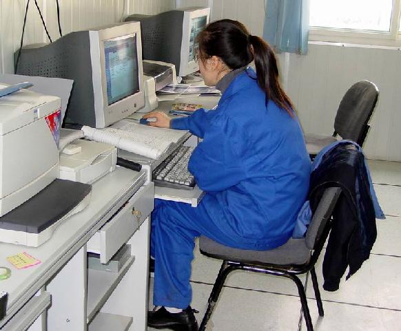 The database for the main hole coring is ready. Ms. Shi Dongmei (graduate student of China University of Geosciences) is entering the Daily Report. We printed a lot of core images for Madam Xu.