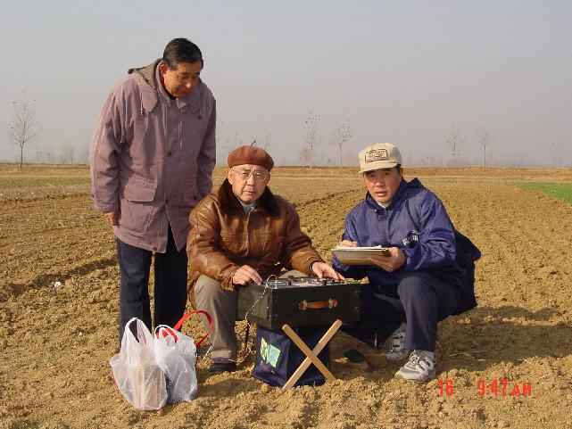 Two experts from Geolphysical Society of China and one from Geology Institute of Chinese Academy of Geological Sciences are using the Natural Electromagnetic Radiation Sounding appratus to determine the depth of the underground geological bodies. The depth CCSD Pilot Hole is reaching 1000 m. The framework of CCSD website is nearly ready.