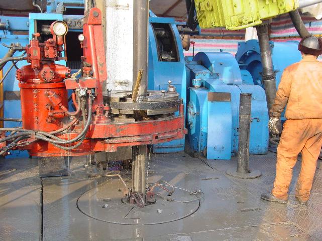Mud overflowed drilling pipes when we tripped out. A thin layer of ice was covered on the drilling platform.