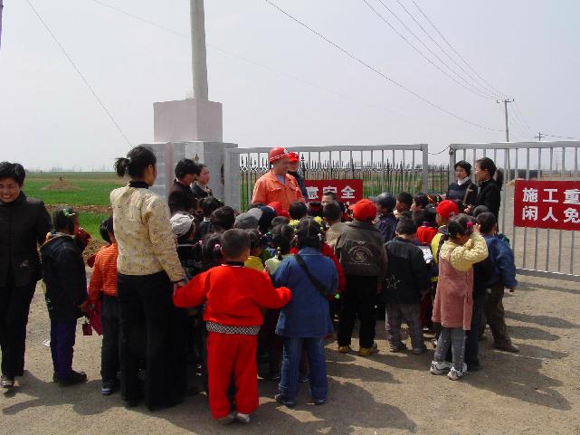 The special guests, children who came from a local kindergarten, visited drill-site under the guiding of their teachers.