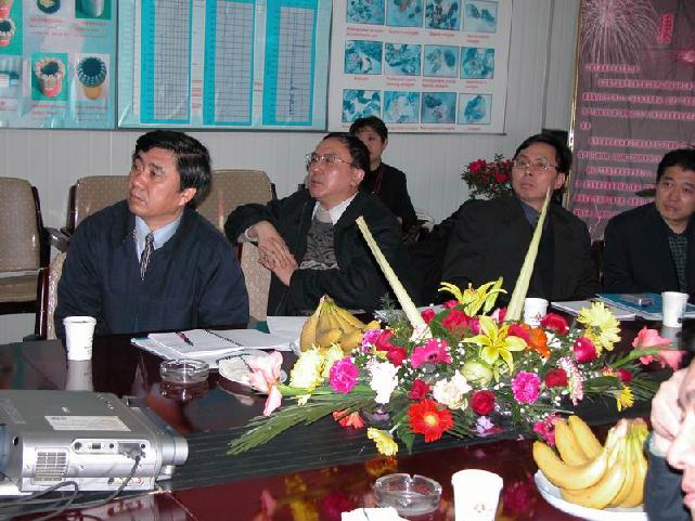 Mr. Wang Shouxiang, vice minister of Ministry of Land and resources of China and Mr. Zhang Hongtao, vice director of China Geological Survey, lead a delegation of higher officials came here, giving their regards to CCSD members. Madam Xu Zhiqin (PI) and Mr. Zhang Wei (the Chief Engineer) gave them two brief introductions for the new scientific achievements and drilling progress. Accompanied by Mr. Wang Da they paid a visit to drill site and field labs.