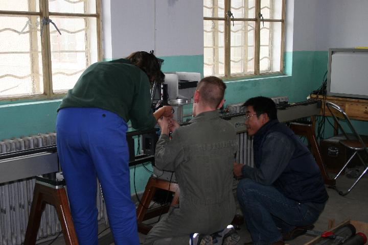 With the help of Mr. Jens Klump, the Geotek system begins to work. They use it to make some testing. The windy and rainy weather contidion interrupt our drilling work.