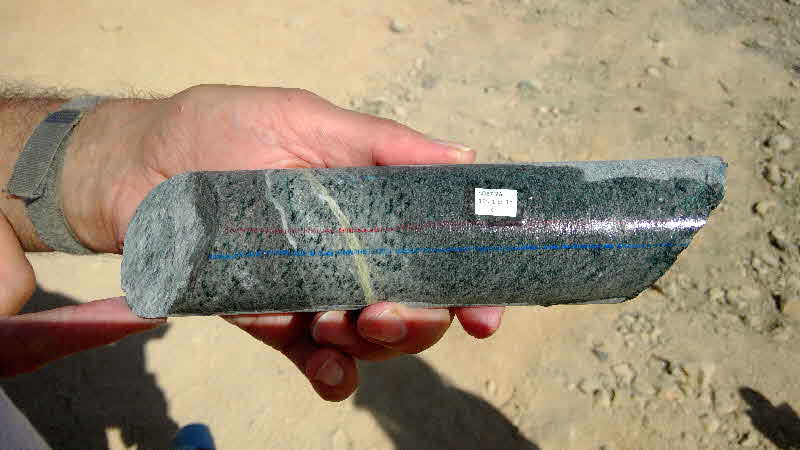 We now reached 377m depth, with core recovery beeing about 100%. Alteration and multiple sets of veins, covering a temperature range from amphibole to prehnite facies are still major features overprinting the foliated gabbro. (Credits: The OmanDP Team).