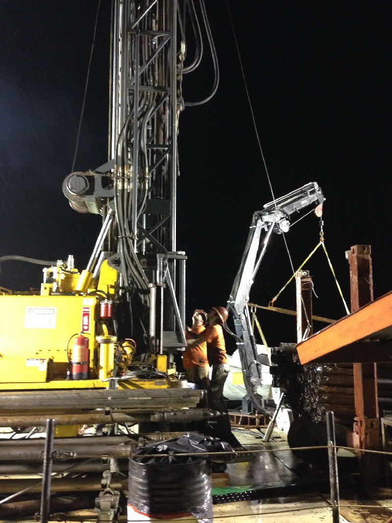 What a difference a night makes. Yesterday the day crew managed to finish up our third hole at Site 1 with limited water pump function and somewhat limited recovery. Beau Marshall from DOSECC arrived from the US with a replacement valve for the controls on the water pump. After installing it, the night crew managed to core 70 meters in nine hours, working in a hard rain for a lot of the night. Here are some photos of the team, led by Tim, AJ, and Shane -not-a-slave-to-fashion- Scheel and assisted by Ryan O'Grady, Kartika Kirana, and Chris Kelly (and a guest appearance by yours truly). We're now making good progress, and have a much better shot at completing the project before our demobilization deadline if we can keep this pace up for a week or two. As for me, I've been up for 33 hours straight, so time for a short nap before loading the borehole logging gear onto our supply boat. (TDP on facebook)
