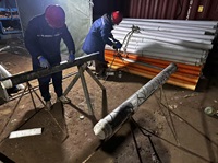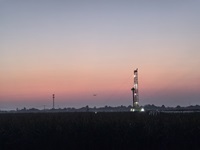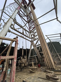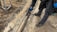 It's cold and raining heavily, but the drilling work continues.