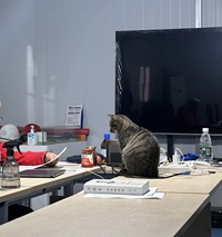 The weather is so cold and the cat needs a cuddle.