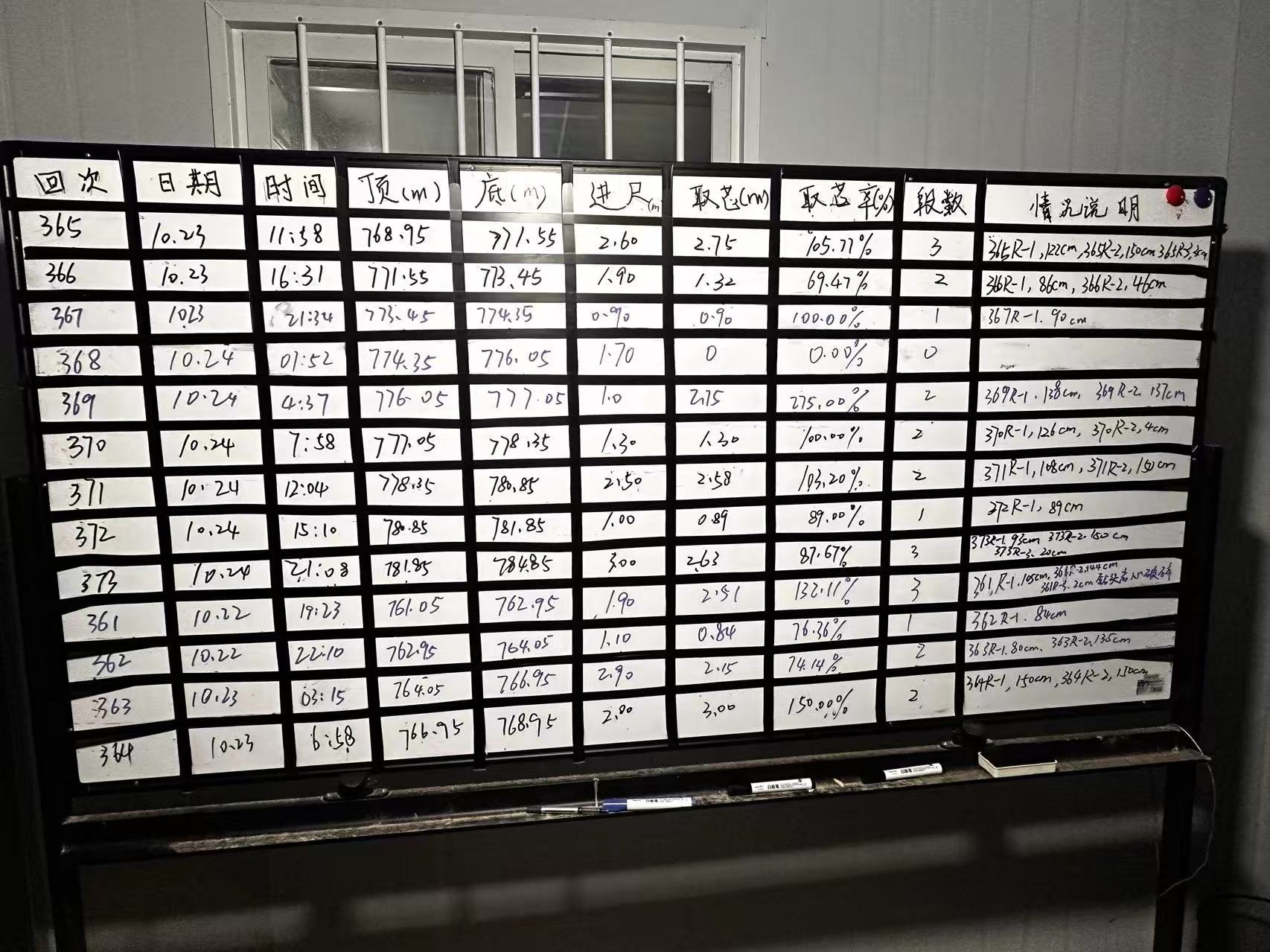 Another full white board with a drilled depth to 769 m