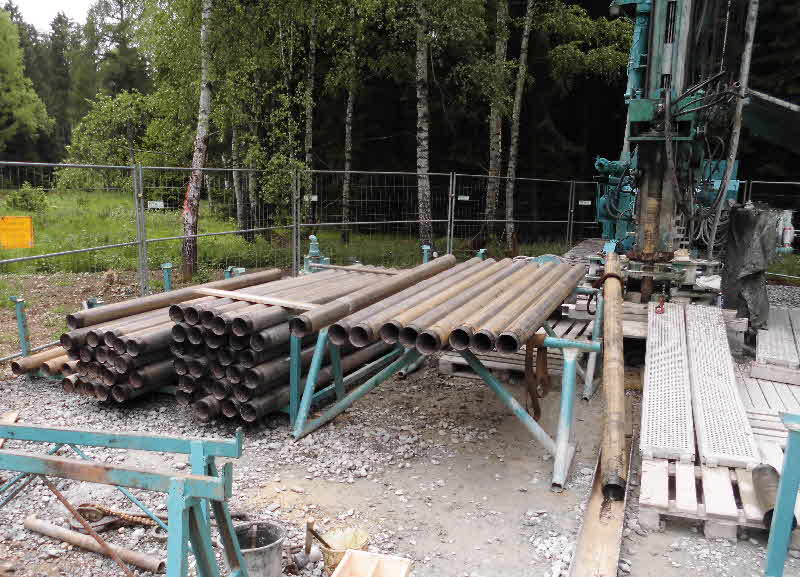 Yesterday core lost, that means all pipes out, get the core, all pipes in again, 12 hours loss, so it is clear, before Ascension Day no 400m depth, then continue drilling on Monday, depth at the moment 365m