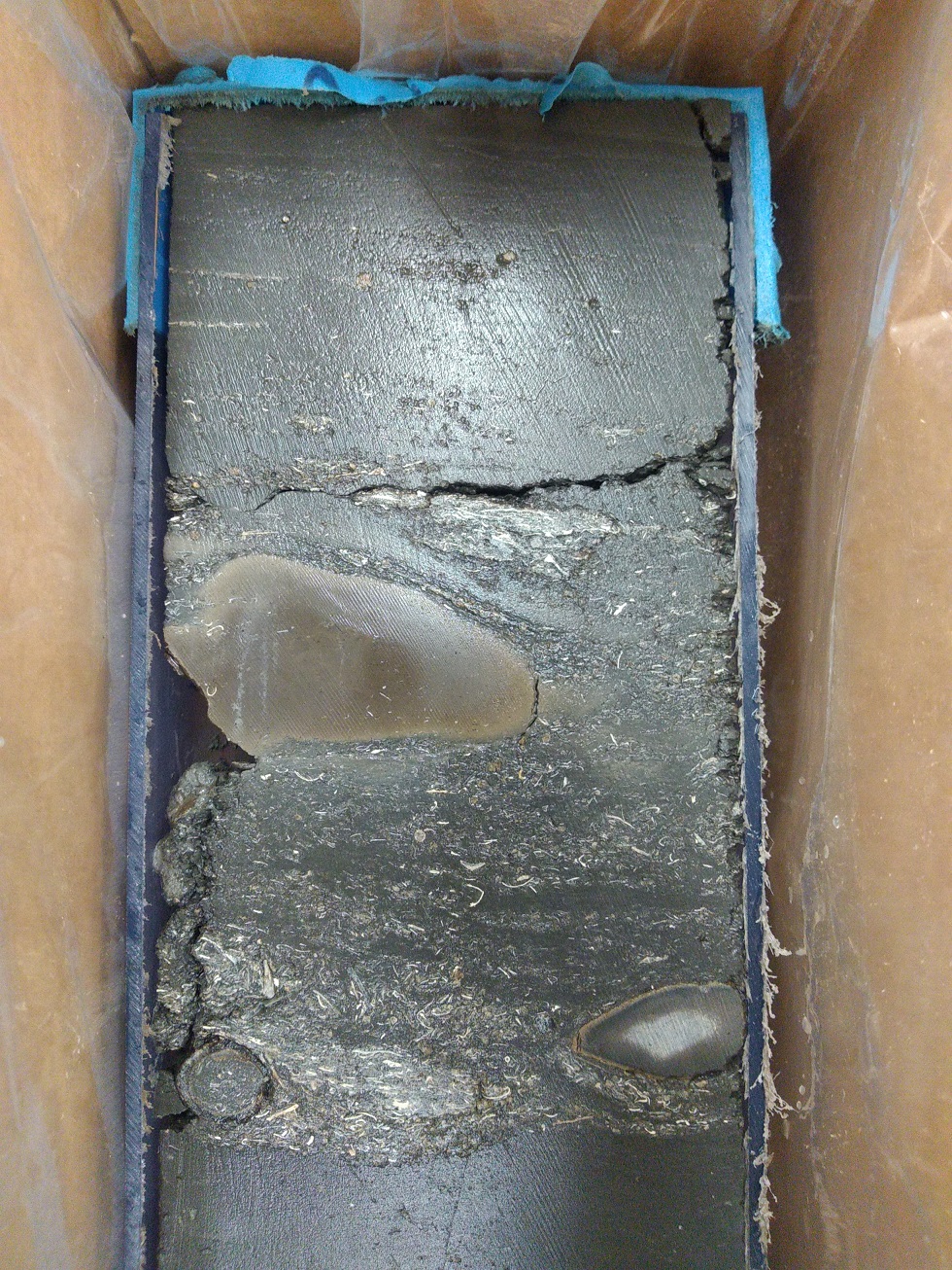 First cut core from Prees waiting for fossil collection and XRF scanning.
