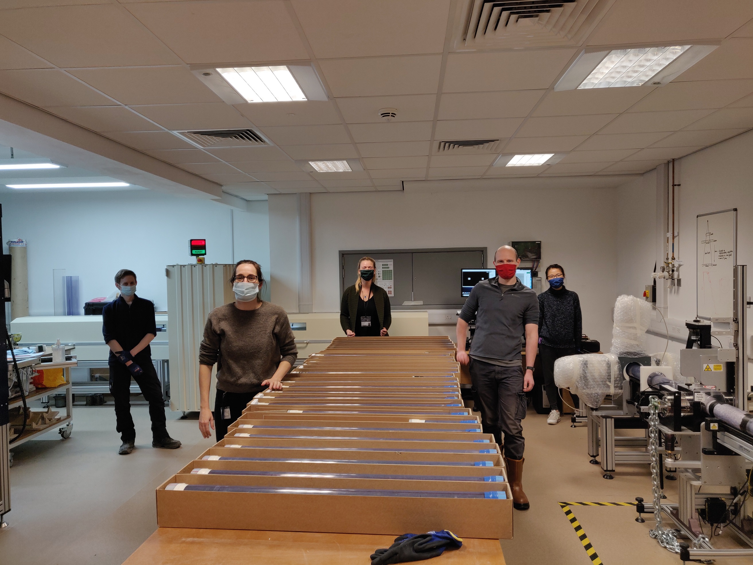 JET scientists with Prees core in the BGS core scanning facility (CSF) working on core scanning in parallel with ongoing coring activity at Prees. The first results from the multi-sensor core logger are beginning to be compiled and look very promising. X-ray flourecence scans, giving elemental abundances, will probably be started on Monday.