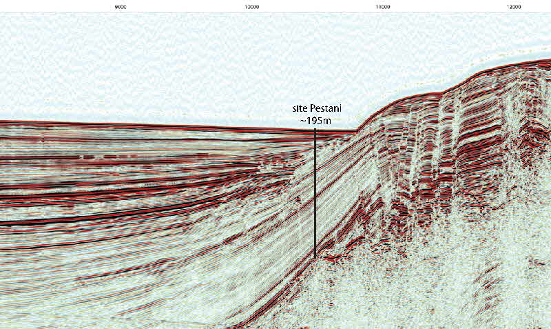 The hole at Pestani site was drilled down to ca 194 m sediment depth and finished with the end of the nightshift. the sediments were clay and silt, but we wanted to get the borehole loggers in, before we need to disassemble the barge. Over the day, the borehole logging took place.