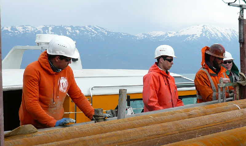 After fixing some smaller technical problems, operations at hole 1D are continuing. We hope to avoid a new break of the wireline by running it a little bit slower. So we made "only" 75 m of recovery during the last 24 hours, hence arrived at 240 m sediment depth in hole 1D now. Weather is still excellent and so we are confident to obtain a very good recovery for the DEEP site. As hole 1C had a total recovery of > 92%, we now have a total recovery (composite sequence) of 474 m for the 480 m long sediment sequence at the DEEP site. We hope that hole 1D will allow us to look even deeper into the sediment fill of Lake Ohrid.