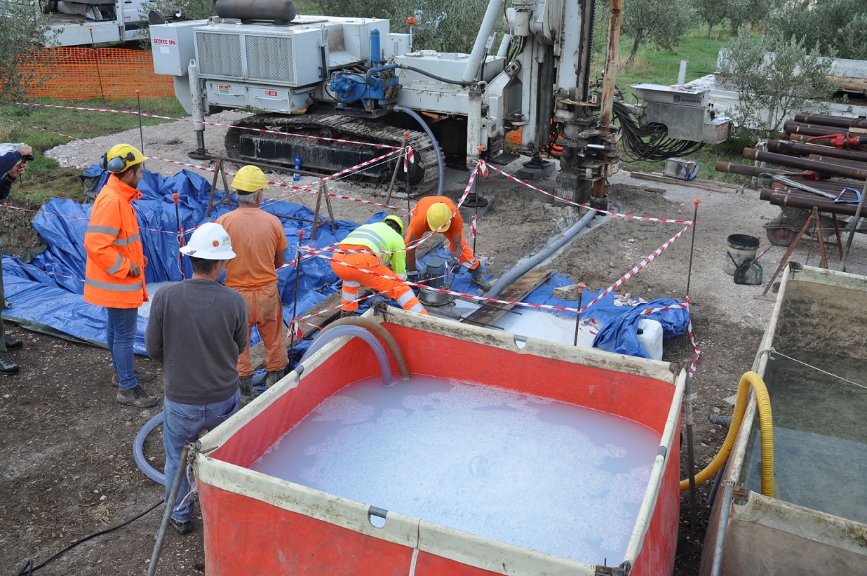 Drilling continues: at 10 m depth drilling reached the consolidated rock and the team was able to set up the equipment for online gas analysis. Every 3 meters samples of the drill cuttings were collected and labeled for future use. Today, the final depth was 23.3 m.