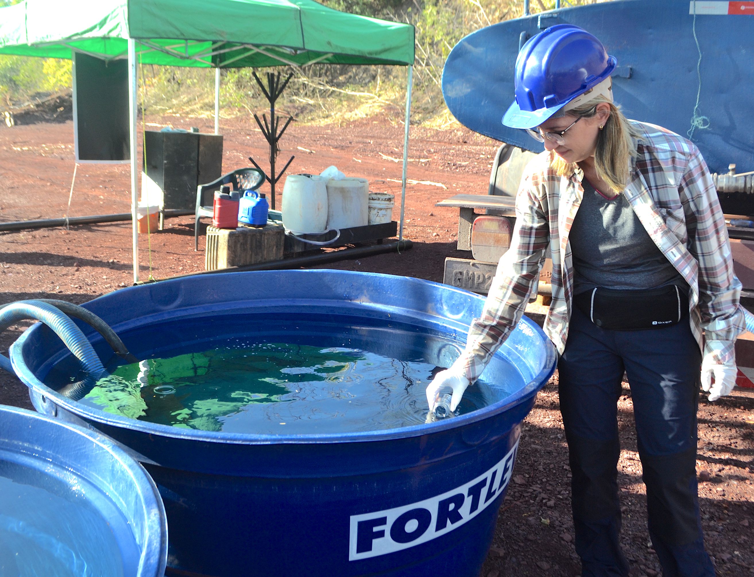 Drilling water must be collected every day, including a control sample for biomarkers studies. This is one of the tasks of Juliana Leme, the head Paleontologist of our team.
