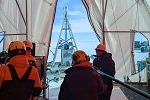 We’ve risen to the Antarctic drilling challenge – our riser is in, connecting the ‘Big Rig’ at the surface of the ice to the bedrock 523 m below. This is a custom-designed piece of engineering, made up of a series of weighted components which lodge into the bedrock, followed by sections of pipe. The riser parts are carefully lowered down the hole through the ice made by our hot water drillers, who continue to provide a source of warm water to stop the pipe freezing in place. With the drillers beginning to ‘run’ our drill string (smaller diameter pipe through which we will send our core barrel), we’re edging closer to drilling for the geological record we’re seeking!