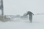 Today a storm swept through the camp, with high winds of 35 kts gusting to 45 kts blowing snow and poor visibility for many hours. However, these tough conditions didn’t stop our drillers from continuing with their work, it was business as usual with a few extra layers. And with core coming up, our science team needed to be there to curate and process it, although fortunately the cold science tent is a little less exposed from the elements than the outside drill rig.