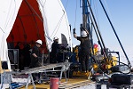 We have successfully retrieved sediment core from beneath 523 m of ice at Crary Ice Rise (ICDP SWAIS2C hole 5072_2_A), rotary coring with our custom-designed Antarctic Intermediate Depth Drill. Our first core measured in at 2.27 m, and by the end of the first 12-hour shift we had more than 10 m of core. After the challenges of the first two seasons, we are thrilled to be underway with obtaining the elusive geological record that we’re seeking from deep beneath the ice.