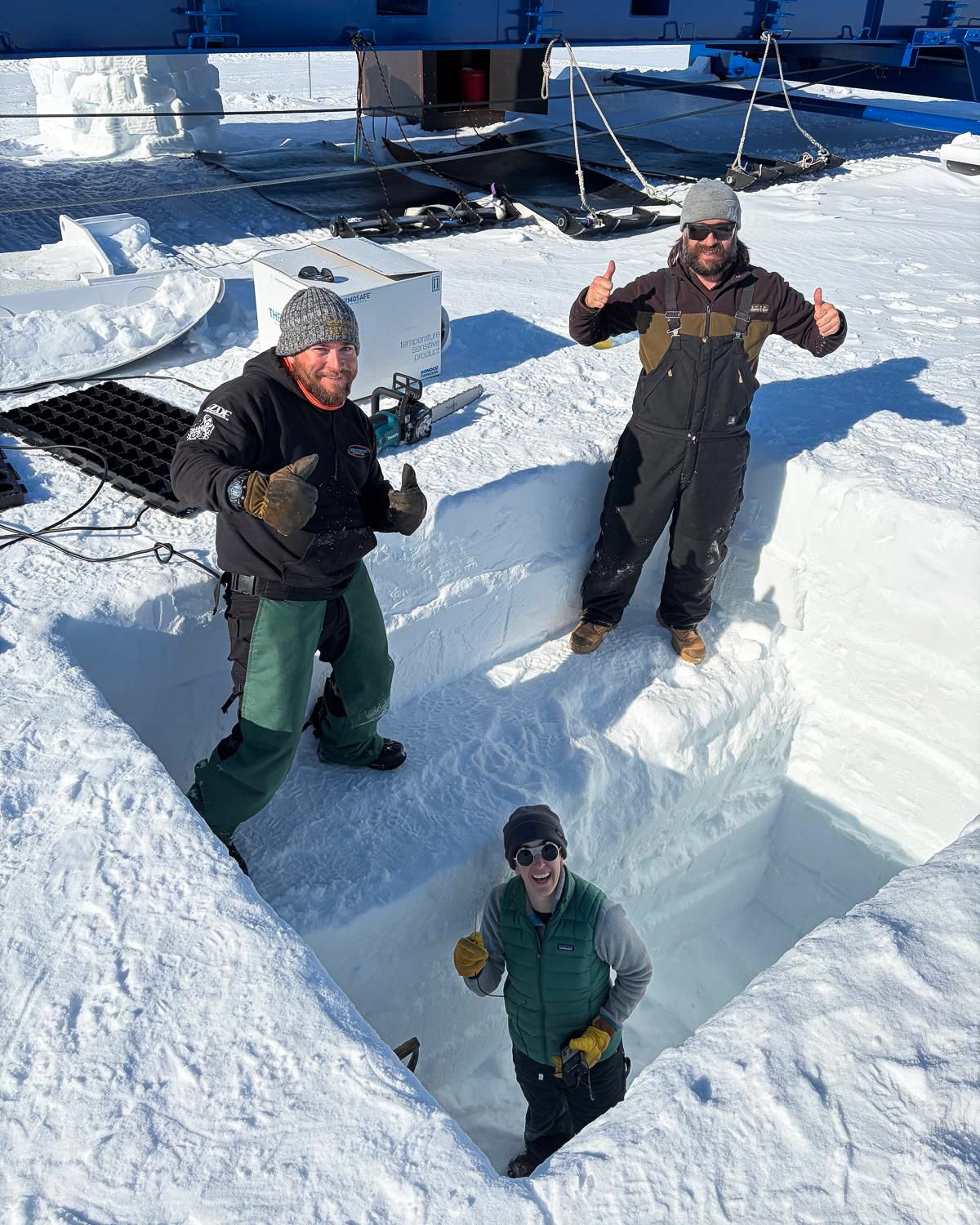 While our drillers are hard at work moving forward towards geological drilling, our newly arrived science team are working at lightning speed to get prepared for when we have our first core on deck. They’ve dug out a pit for cold storage of microbiology samples. These need to be kept at around -20°C. The warm science container has been transformed into a lab, ready to X-ray cores and take sediment samples for microbiological analysis. The team were thrilled to find a note from last season left with the lab supplies wishing them well!