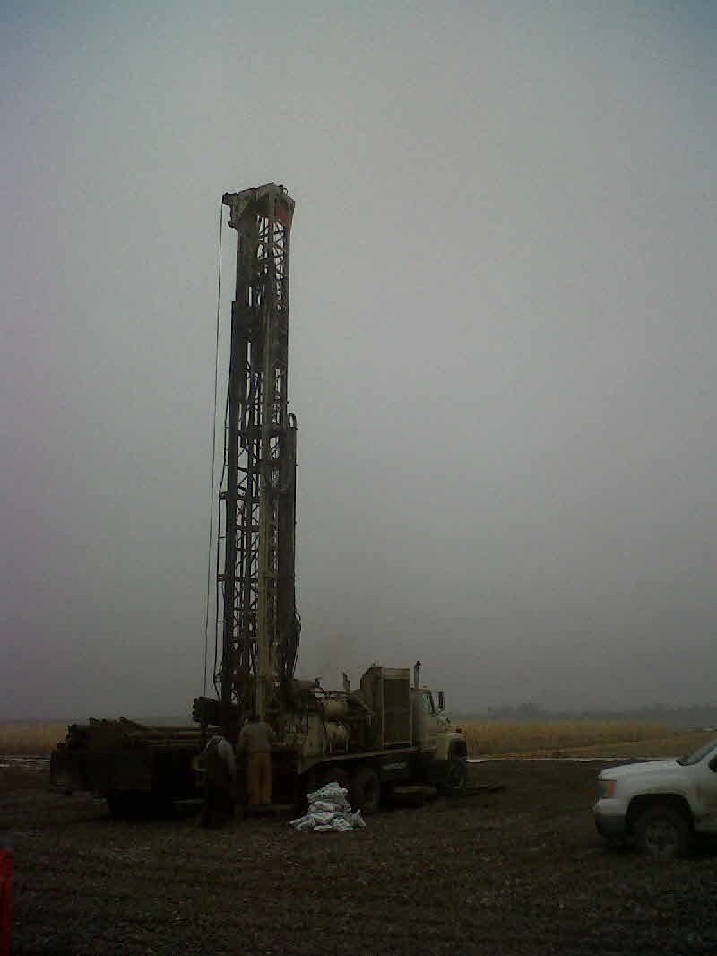 End of the line at Kimama. Doug Schmitt and his crew from University of Alberta oversee wireline geophysical logging by Centrury Geophysics after we reach bottom hole depth of 1854.5 m. Logging begins with nuclear tools through the casing, then moves on to open hole logging. Sediment bridges create problems in the open hole, but portions are logged successfully. Site preparation for the Kimberly hole has begun at the University of Idaho Research and Extension Center. The snow has melted, leaving a thick layer of mud. Still gooey after a week of drying out.