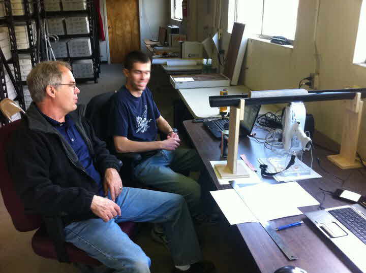 While the rig is down for repair again, Twin Falls High School Honors Earth Science Class of Jo Dodd visits Project Hotspot. After a brief introduction and orientation talk from Chief Scientist Lisa Morgan, the students get a lesson in wire line core drilling from DOSECC Operations Manager Beau Marshall. Then into the Core Logging Tent to view core from 914.4 meters below the surface, and learn how we log and study core to understand the deep earth. A good time was had by all.. Additionally, Eric Christiansen and Richard from BYU spend a few days at the USU Core Lab acquiring initial analyses of the Kimama drill core using a portable XRF unit. They constructed a core stand to hold core over the instrument during analysis, set so that the business end of the X-ray tube is almost but not quite touching the sample. The data so far look very good and indicate that we have Craters of the Moon type flows at depth in the drill hole.. We hope to start coring again by the end of this week.. More to come!