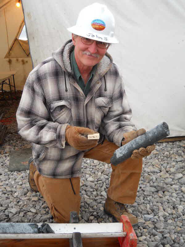 The last week was amazing: 100-140 feet per day of beautiful rhyolite core in all varieties, from altered rhyolite through glassy and crystalline welded tuffs. It cuts like soft butter. But alas, it was not to last: late Friday night hydraulic problems on the CS4002 forced a complete shutdown till a technician can come and troubleshoot the system on Monday. We are using the downtime to get caught up on logging and data base entries. Current depth 3091 feet (942 m). We have welcomed Lisa Morgan onto the science team.. She is well versed in rhyolites from Yellowstone, so her input is very welcomed.