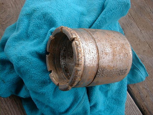 After a period of drilling with a tricone bit, drillers began coring again. However, hard, fragmented flows have been wearing out drill bits and jamming the core barrel.