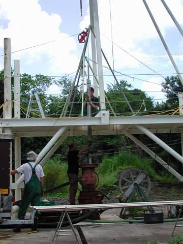 Today, we tried to install the packer below the expected casing break at 380 m. Unfortunately, we could not reach more than 178 m, because we hang up with the equipment at that depth.