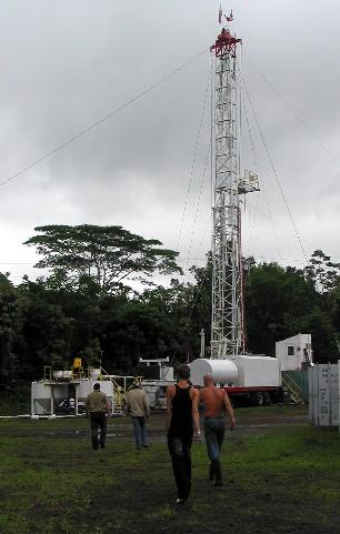 Over the past few days, our attempts to get a tricone rotary bit to the bottom of the hole were unsuccessful. It appears that the rotary drilling equipment may be in less than optimal condition, so we have decided to switch back to core drilling. At the time of this report, we are tripping into the hole with a coring bit.