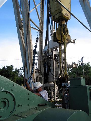 Today we conducted an inclination survey on the lowermost 50 feet of the hole. This survey revealed that the hole in general is inclined six to nine degrees near the bottom, and varies its inclination due to S-shaped bends. These bends could be what exerted so much stress on both the core barrel and stiff rod joints over the past two weeks. Tomorrow we will try coring through the rest of the casing with a five foot long core barrel. We hope that this shorter barrel will be small enough to travel through the bends in the casing unimpeded.