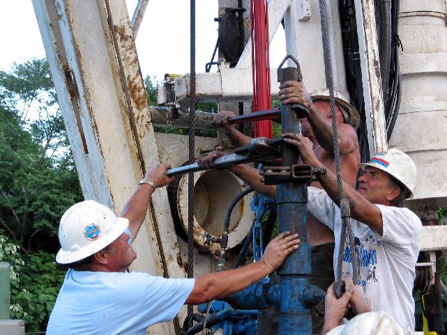 This morning, we were lucky enough to recover some of the material we drilled yesterday, even without having drilled with the inner core barrel. We retrieved a metal piece of the casing shoe and a fist-sized piece of olivine-rich rock. After tripping back into the hole, we injected a slug of cement into the bottom and tried to pump it into the formation. The goal of this is to get the cement to anchor the loose material, which will make it easier to drill through. We may need to inject more cement tomorrow, but soon the hole should be stable enough for core retrieval.