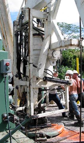 We drilled through casing most of the day with the mill bit and stiff rods, until the bit wouldn't cut any more. We won't know for sure if we were successful in our attempt to drill through the side of the casing until tomorrow, when we finish tripping out and retrieving the bit. If necessary, we can continue drilling with another mill bit that will arrive tomorrow morning.