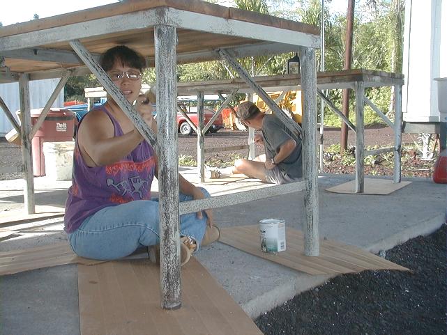 It has been a beautiful sunny day in Hilo, so the geology crew has taken advantage of the nice weather to do some work outside.