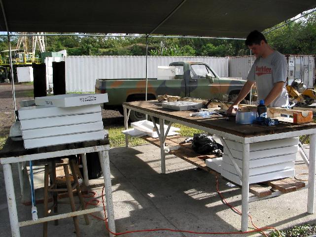 We are coring again, but the rock recovered today was more highly fractured than yesterday. This may be an indication that we are about to drill through the bottom of the very thick, massive unit that we were in for the last few days. Chief Core Logger Mike Garcia is at the site and will stay through tomorrow to finalize our descriptions of the core that has been logged so far.