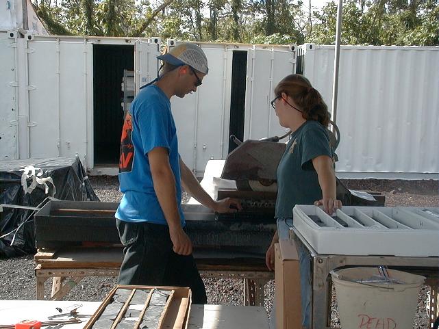 Drillers tripped in a new bit early this morning. We boxed nearly 30' more pillow basalt today.
